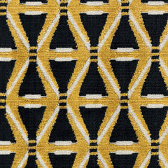 Collage is a durable tri-color chenille upholstery fabric with a modern geometric motif, featuring a devoré (burnout) technique.