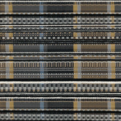 An overlaying stripe and modern plaid pattern with multiple colors throughout. This fabric is available in 4 running line colors, with additional colorways available upon special request. This commercial upholstery fabric is stain resistant, mildew resistant, UV resistant, water repellent, and bleach cleanable. A great option for any high-trafficked areas or anywhere with direct sun.