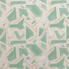 A fun and contemporary drapery cloth featuring scattered shapes depicted in a soft hand-painted technique over a stippled background.
